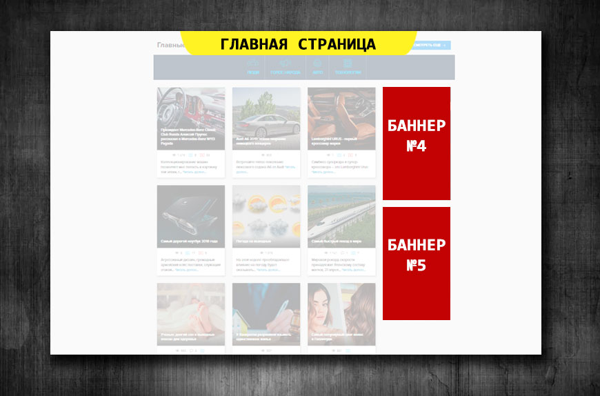 ● Баннер №5 – главная, весь раздел «Новости», раздел «Скидки»